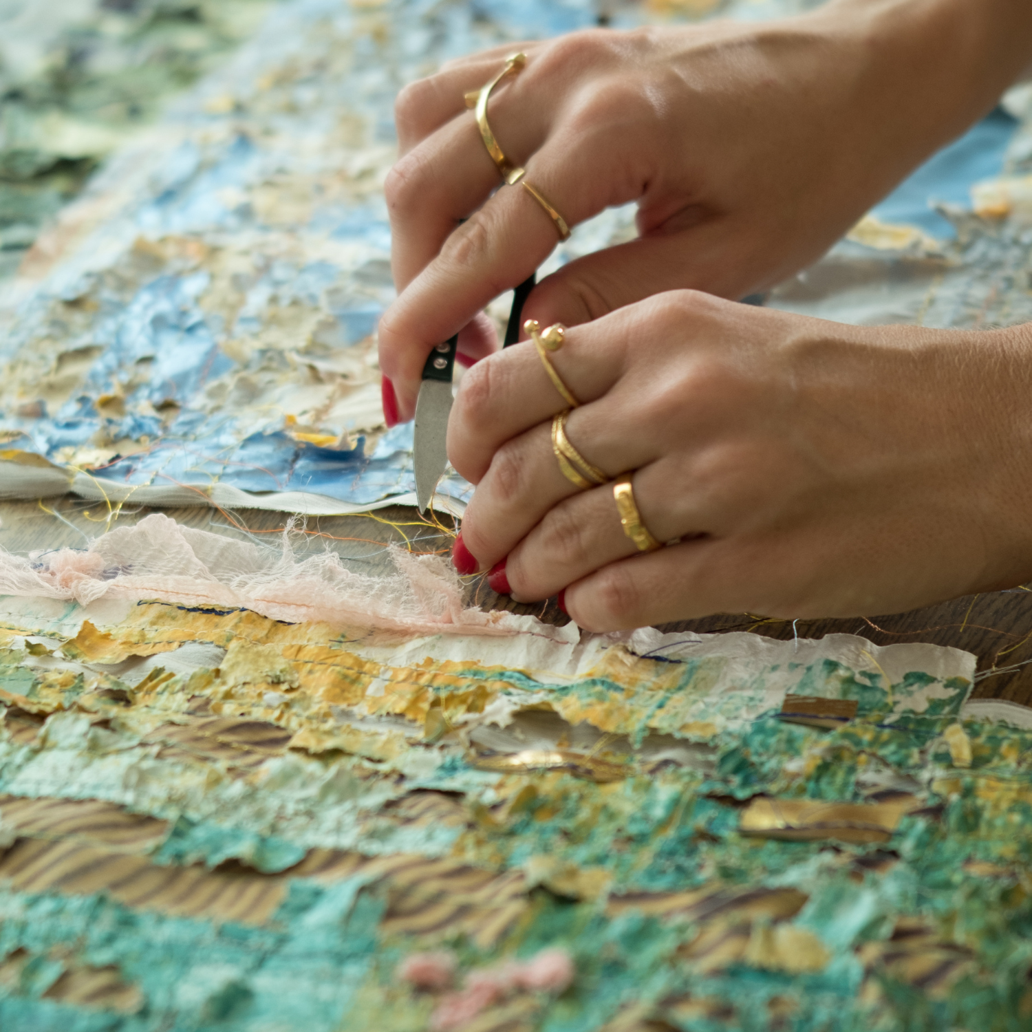 סלעים מכותנה_יצירת טקסטיל וציור